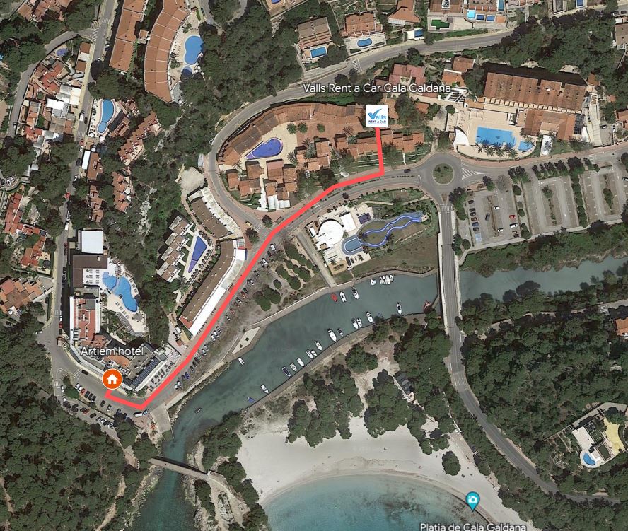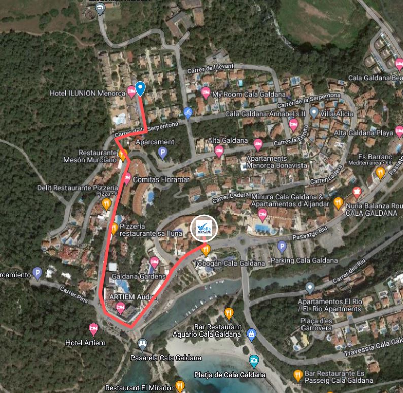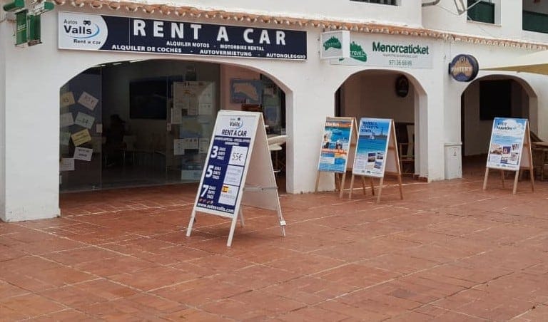 Autos Valls Menorca dispone de una Oficina de Alquiler Coches Cala Galdana ubicada en el Centro comercial d’algendar a metros del Hotel Audax Cala Galdana, Hotel Melia Cala Galdana y Ilunion Hotel Cala Galdana,